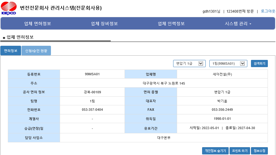 변전전문회사 변압기 면허 - 한국전력공사